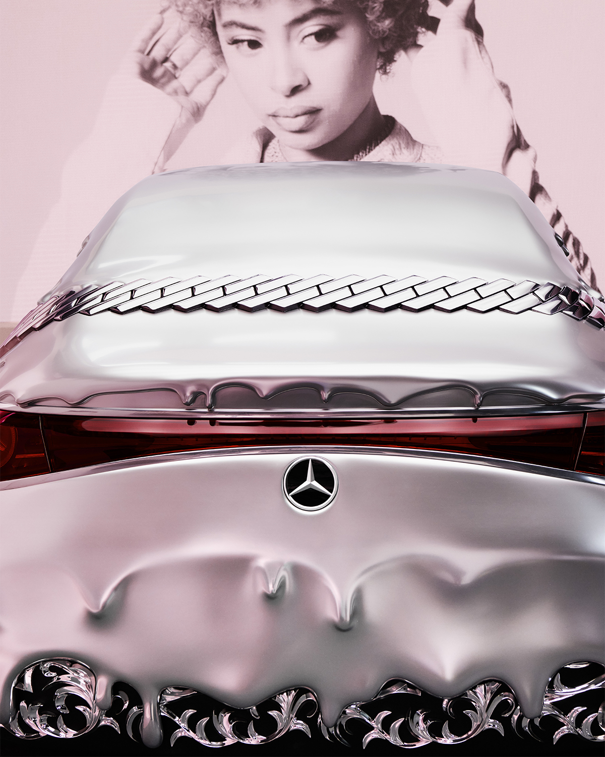"Mercedes-Benz unveils molten chrome CLA car by ice spice with diamond chain jewelry" – Design boom